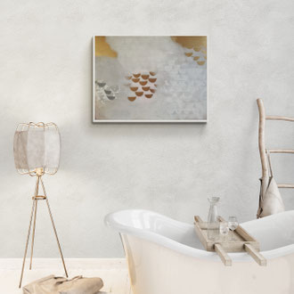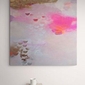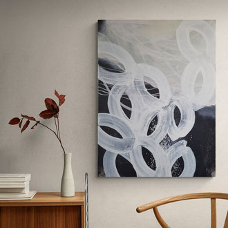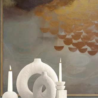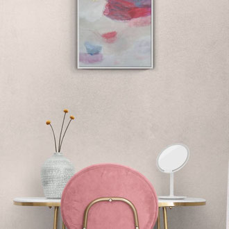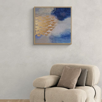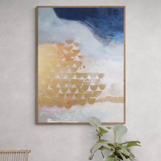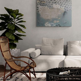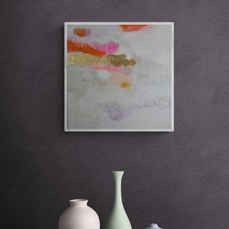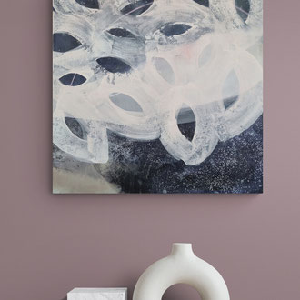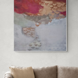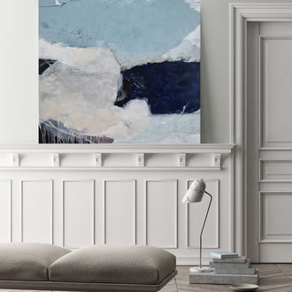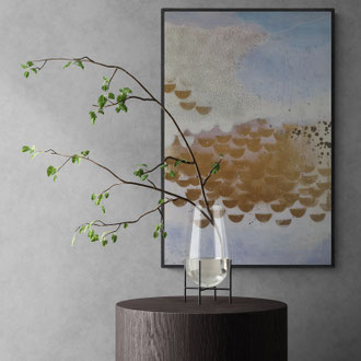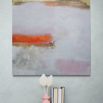 Influenced by life on the Lower Rhine with its flat landscapes and wide skies, I create my abstract landscapes and skyscapes. With an interplay of color fields, structures and patterns, I try to create the feeling of a beautiful space. This results in poetic landscapes that convey expanse, atmosphere, floating, lightness, but also balance.